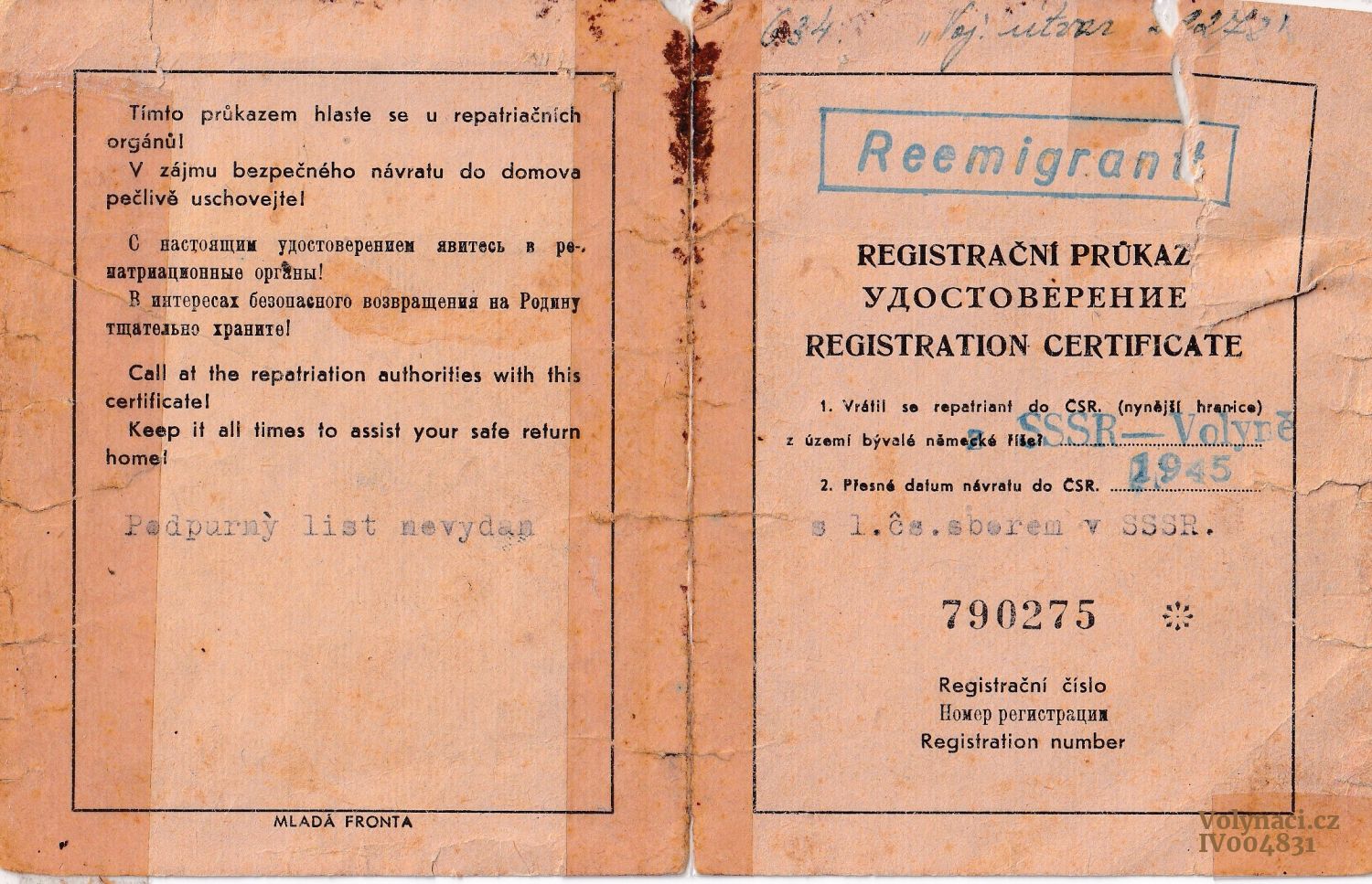 | Repatriace - fotografie a listiny |