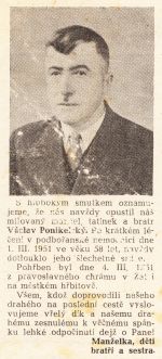 Nekrolog Václava Ponikelského