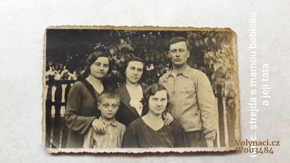 pod Annou stojí její syn Václav Nudčenko- otec Heleny Matysové, sedící sestra Anny, Libuše Missová.