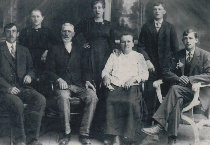 rodina Loukotova, zleva Emil, Naděžda vdaná Komárková, Josef, Anna vdaná Špringlová, Justýna, Jaroslav, Václav.