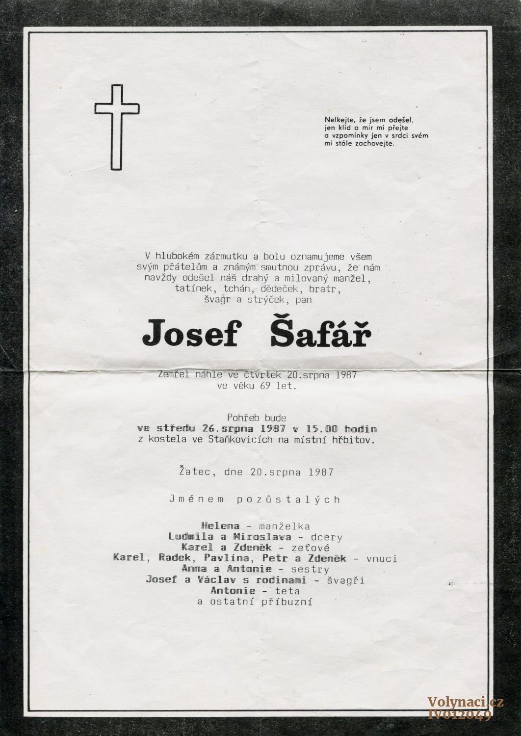 | Úmrtí | † 20. 8. 1987, hřbitov Staňkovice |