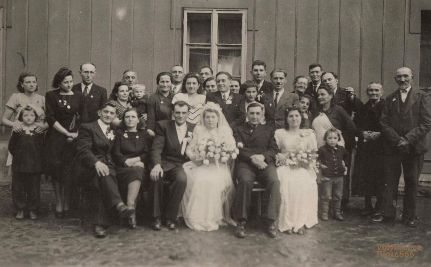 Zleva Josef Šafář, Antonie Šafářová, jejich rodiče František a Marie Šafářovi Novinách Českých na Volyni v lednu 1947