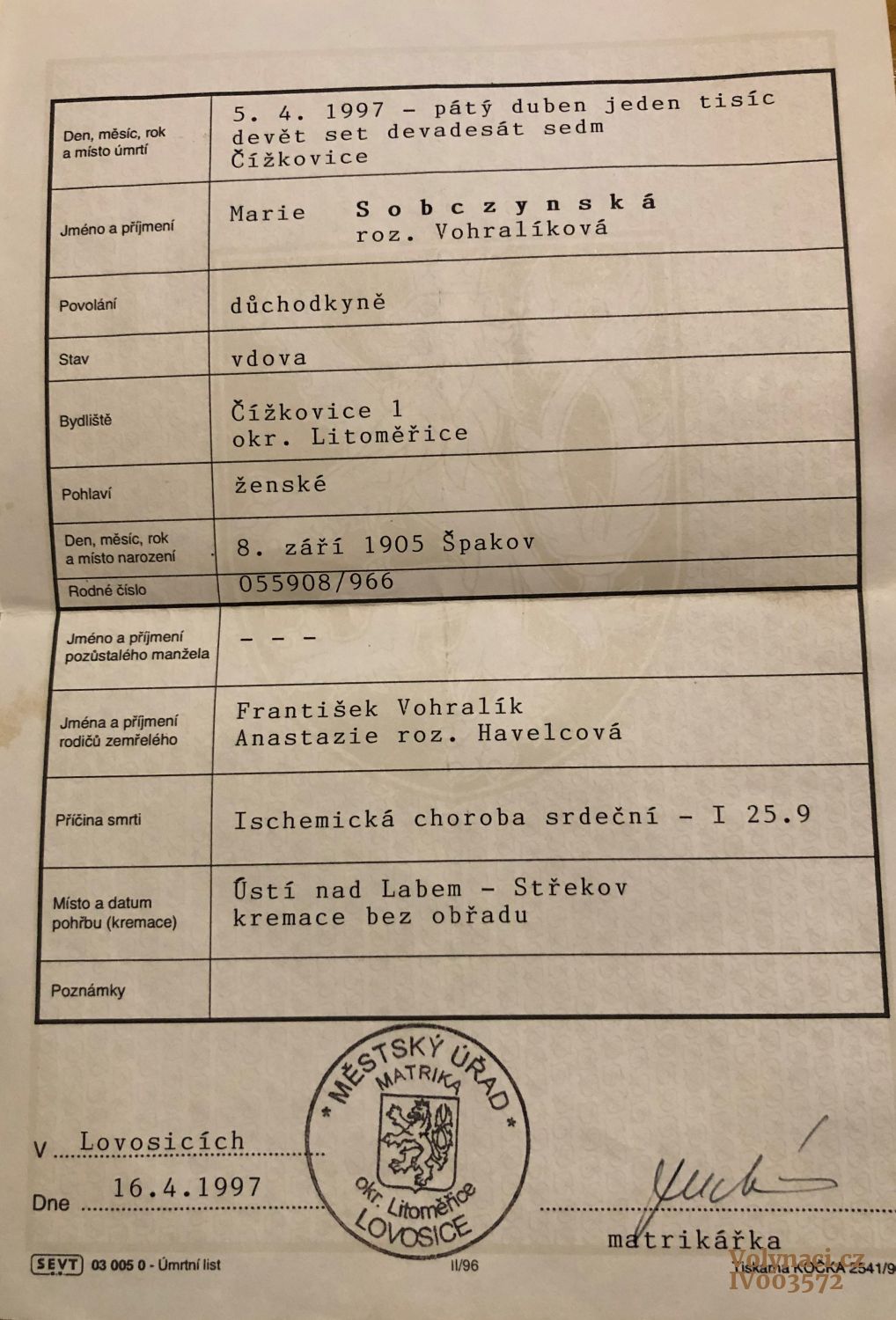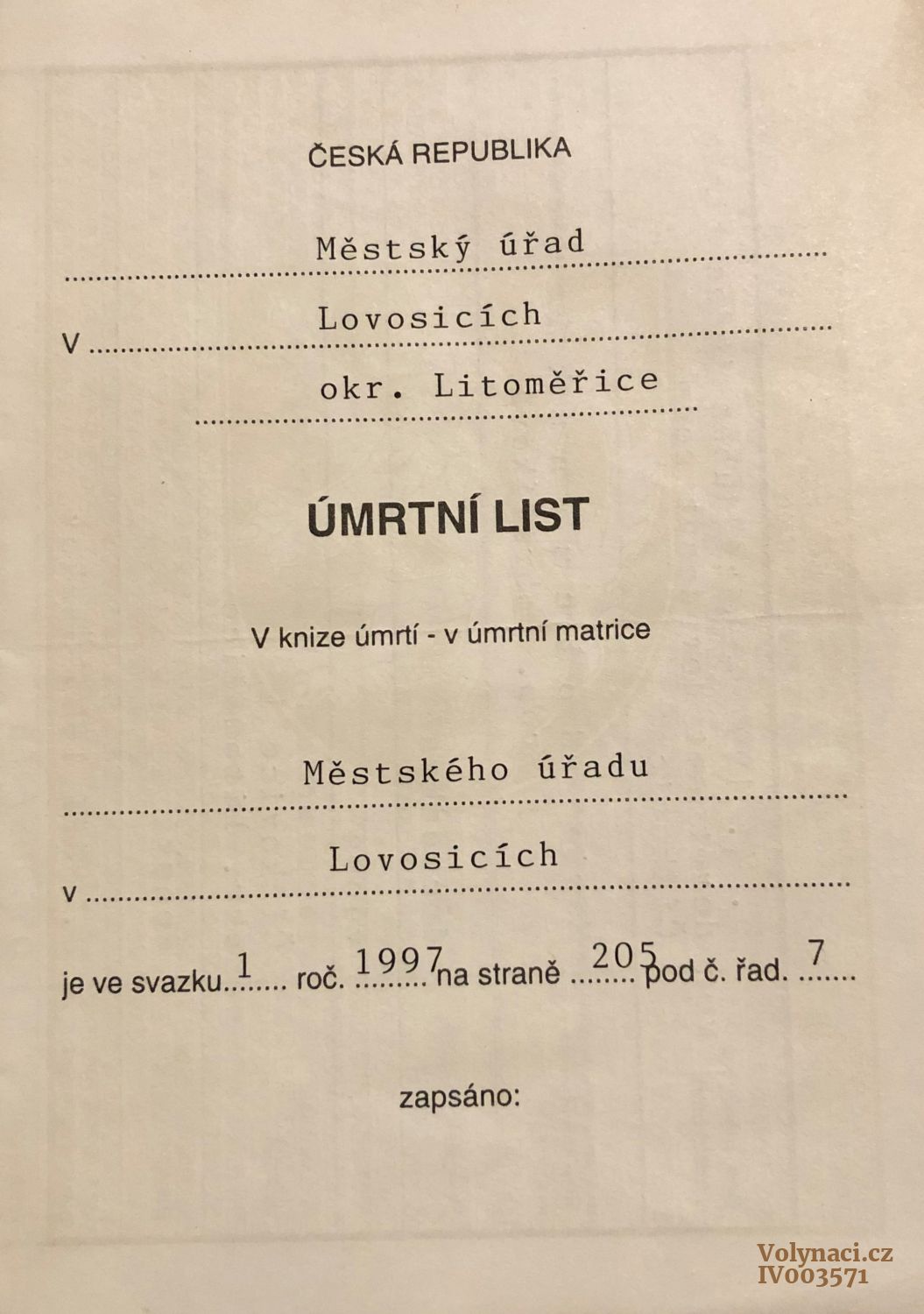 | Úmrtí | † 5. 4. 1997, Čížkovice |