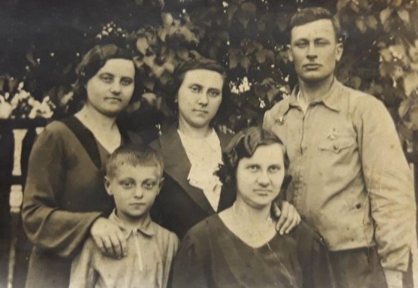 pod Annou stojí její syn Václav Nudčenko- otec Heleny Matysové, sedící sestra Anny, Libuše Missová.
