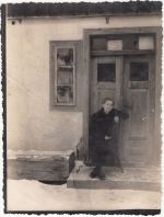 5.3.1947 - paní Antonie Kechrová, maminka Emilie Kechrové provdané Martinovské, sedí na zápraží před domem.