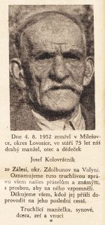 | Úmrtí | † 4. 8. 1952, Hřbitov Milešov |