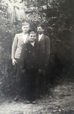 Rok 1947 - sourozenci Konáškovi po přesídlení, zleva Josef *1924, Bohumil *1930, Rostislav *1932, sedící Marie *1927