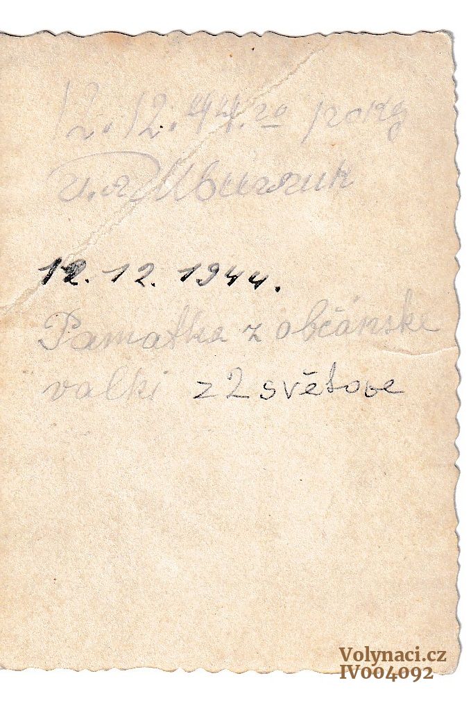 Josef Švihlík 12. 12. 1944 2. světová válka + další foto - text na zadní straně (poznámka -15. 12. 1946 návrat z gulagu)