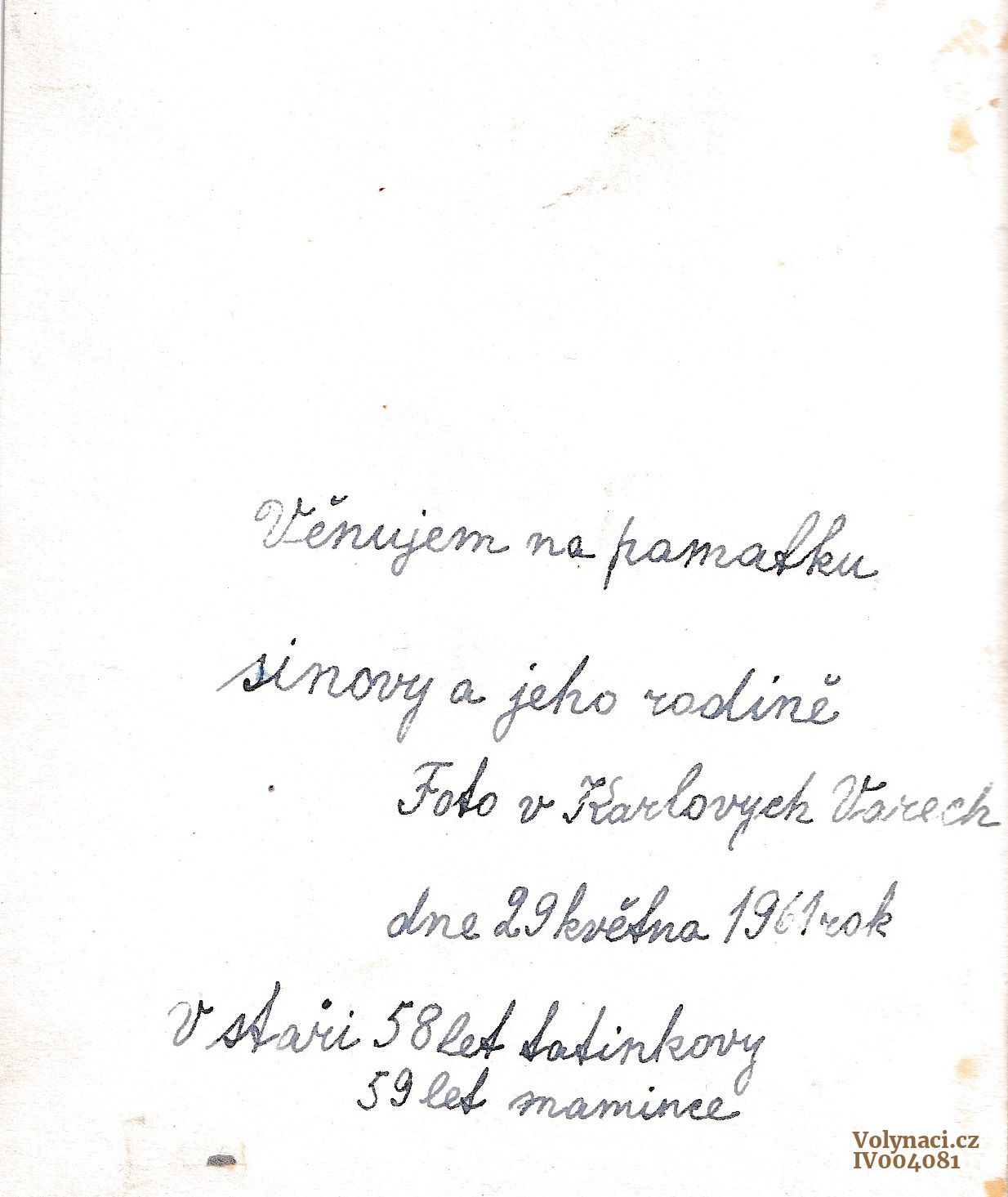 Josef Švihlík a Helena roz. Propilková, občanské foto rok 1961 s textem na zadní straně