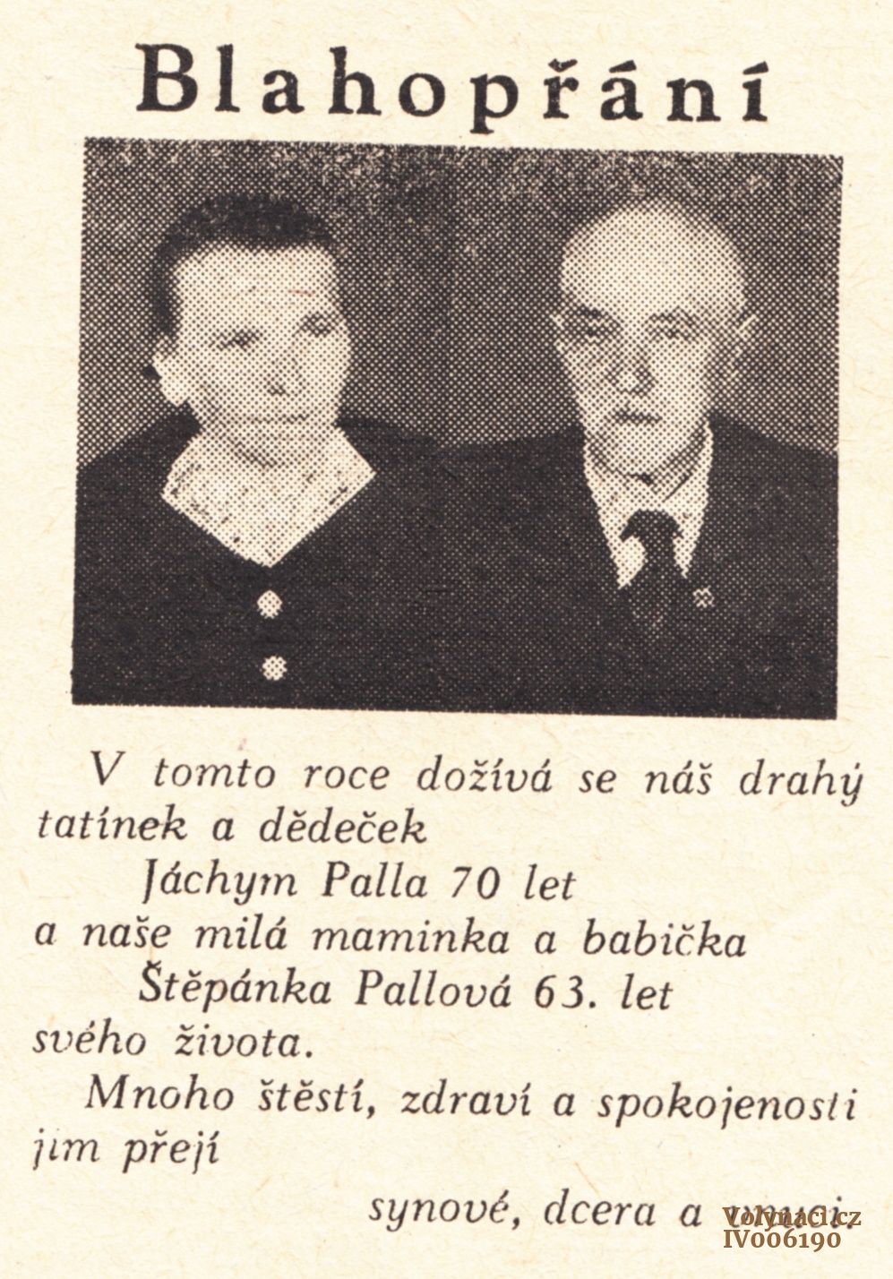 Jáchym Palla 70 let a Štěpánka Pallová 63 let