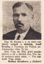 Blahopřání Josefu Krupkovi z Teremna k jeho 74 narozeninám.