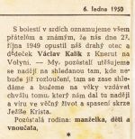 Nekrolog Václava Kalíka z obce Kneruty na Volyni