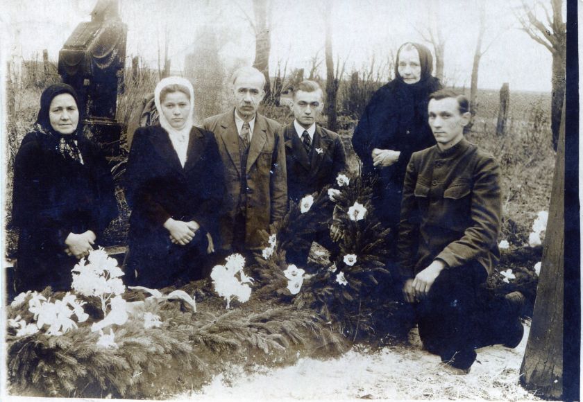 Veverkovi - rozloučení na hřbitově před odjezdem do Čech 1947