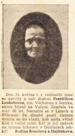 Nekrolog Františky Loukotové roz.Váchové z Jezírka na Volyni.