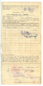 Migrační dokument - list o přesídlení, obsahoval i stručný soupis majetku, který si sebou vezli do Čech.