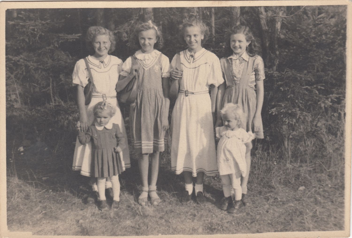 sestry s dětmi a návštěva z Argentiny - Paulus byl manžel Anny roz. Šimáčkové. Byl také Čech a poznali se až v Argentině. V roce 1948 přijel do Čech hledat v Praze své kořeny a přijel se podívat a vyřídit pozdravy i příbuzným manželky. Václav Šimáček ho tady po Čechách vozil autem.