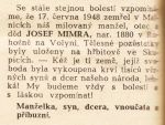 Nekrolog Josefa Mimra z Rohozna na Volyni