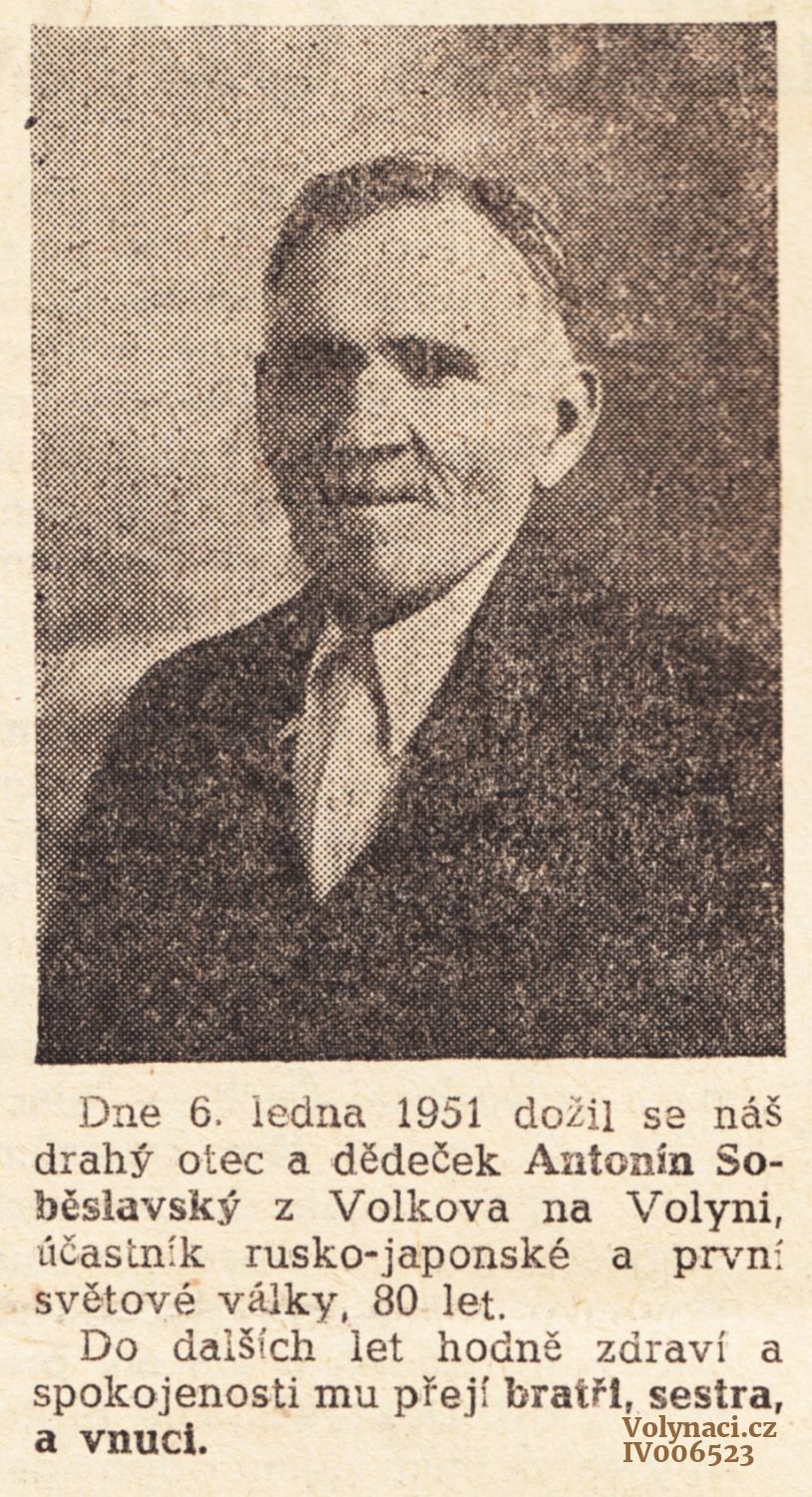 V roce 1951 se Antonín Soběslavský dožil 80 let
