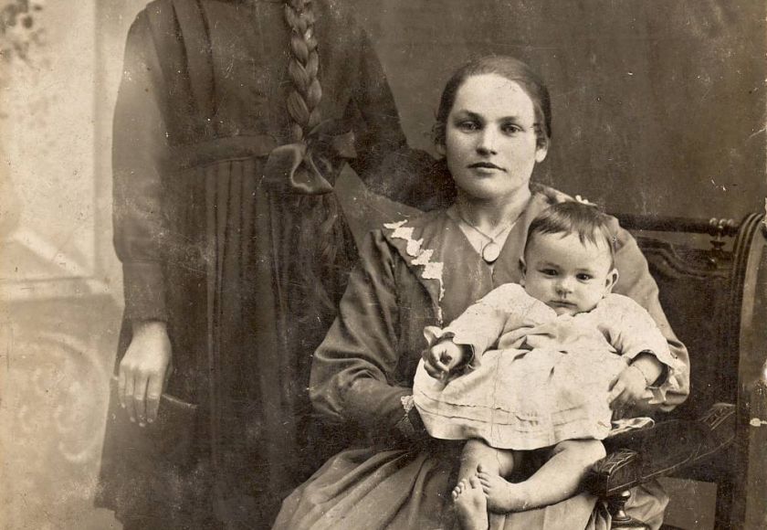 Marie Křesinová, rozená Kabátová - dcera Jana s nejstarším synem Václavem na klíně a vedle stojí její budoucí švagrová Božena Křesinová , která si vzala za manžela jejího bratra Václava Kabáta.