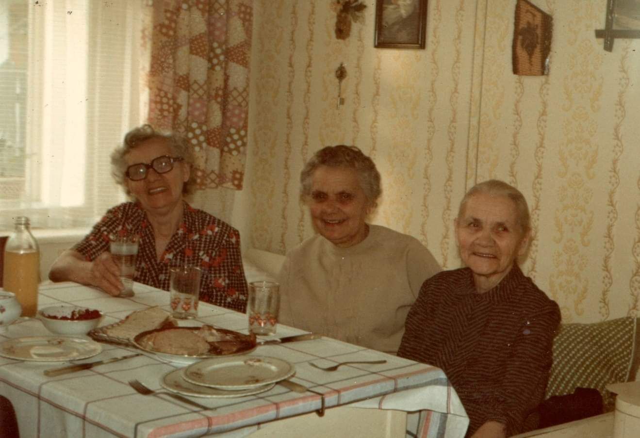 Sestry Hrycákovi z Dlouhého Pole v Čechách, asi rok 1980.
