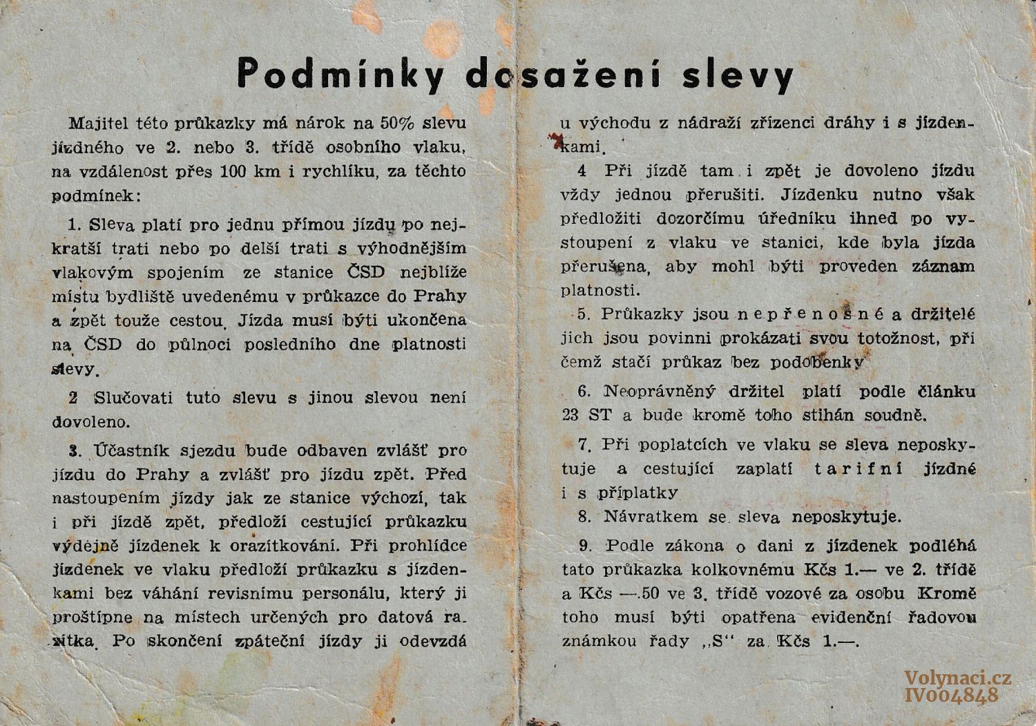 Průkazka na dopravu vlakem na 4. Sjezd Obce legionářské v Praze