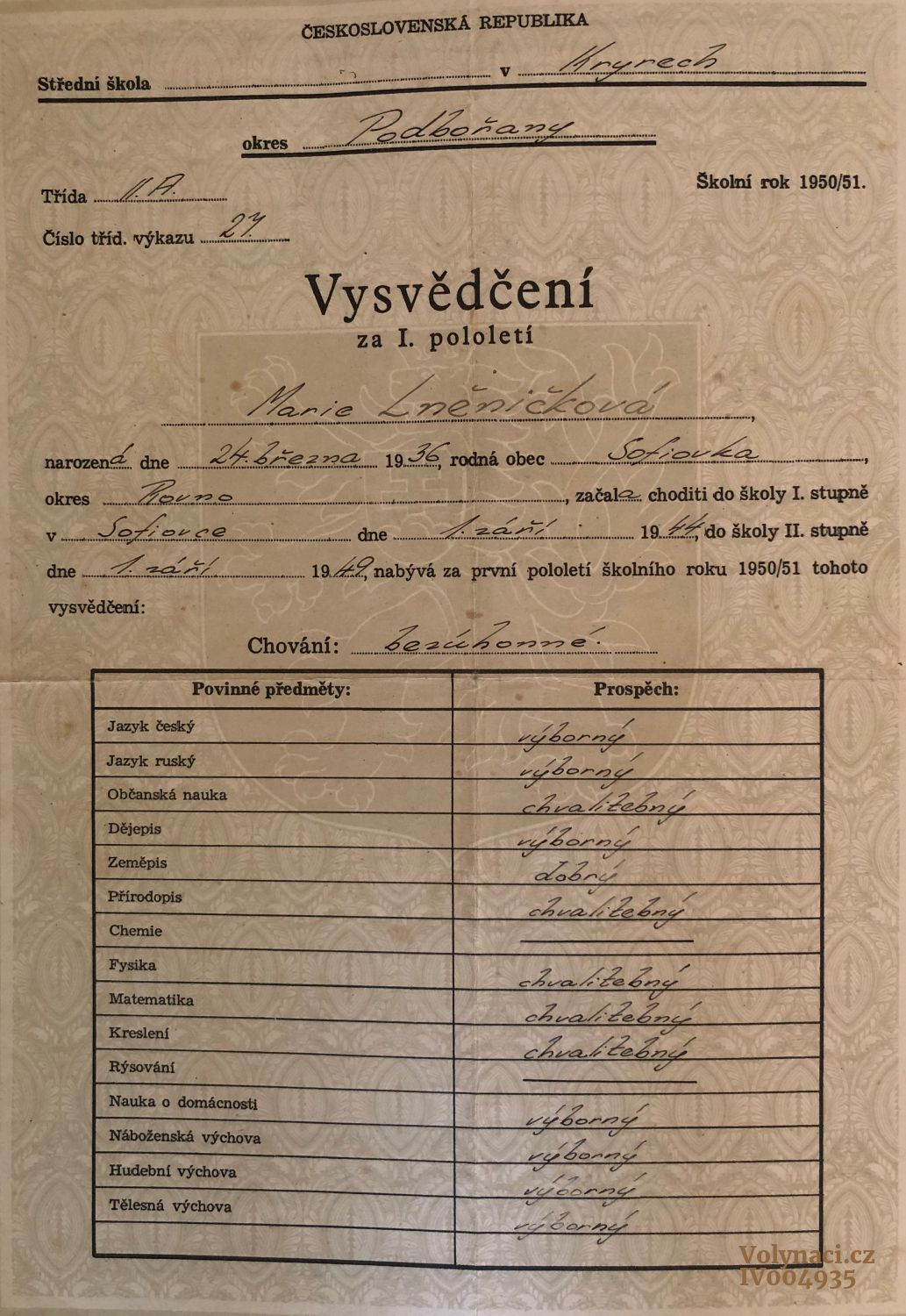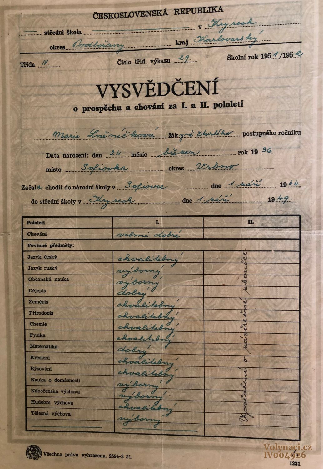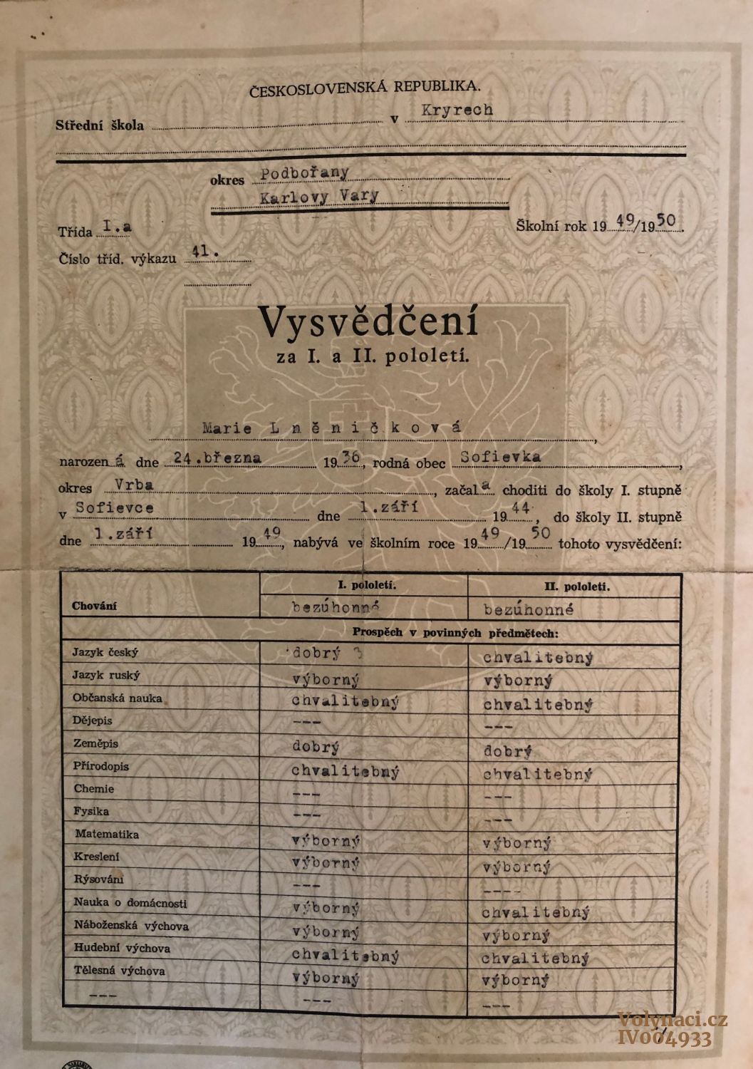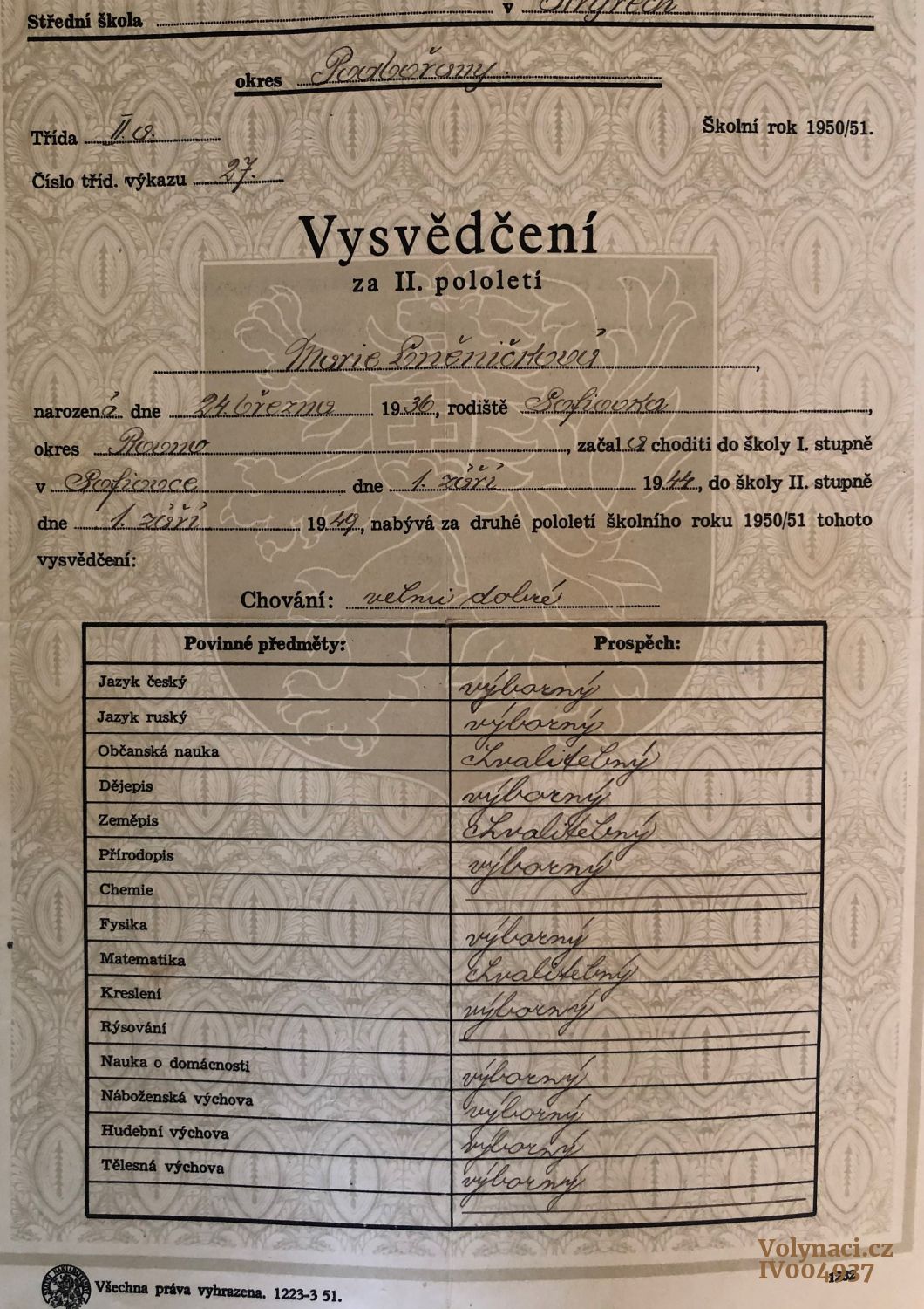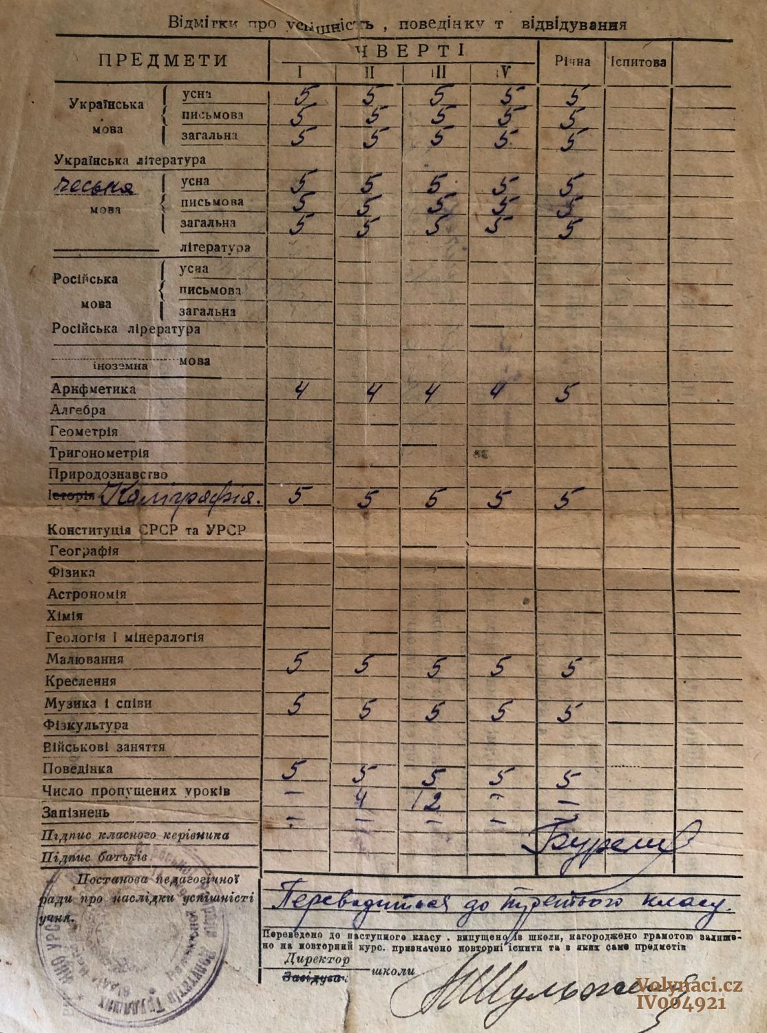 Poslední školní vysvědčení na Volyni, Rok: 1947, Zdroj: Stanislav Sabol z vlastního archivu, Inventární číslo: IV004923
