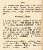 Nekrolog Alexandra Justýna z Rovna na Volyni.