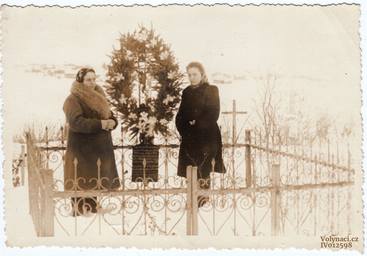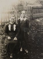 Emílie s dcerou se před odjezdem do Čech loučí na hřbitově v Dorohostajích s rodiči Janem a Pavlou Kazdovými a bratry Jaromírem (11) a Toníkem (21).