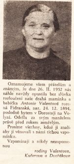 Nekrolog Antonie Valentové.