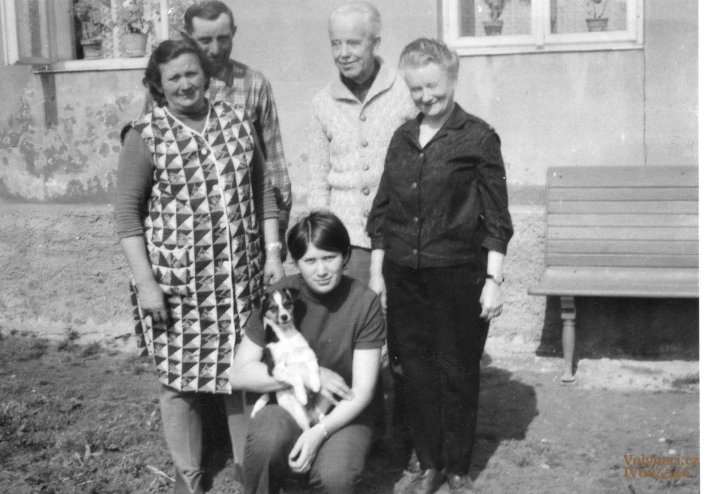 1947 Dlouhé Pole Janouskovi, Sajlerovi, Roušarovi před odjezdem do Čech
