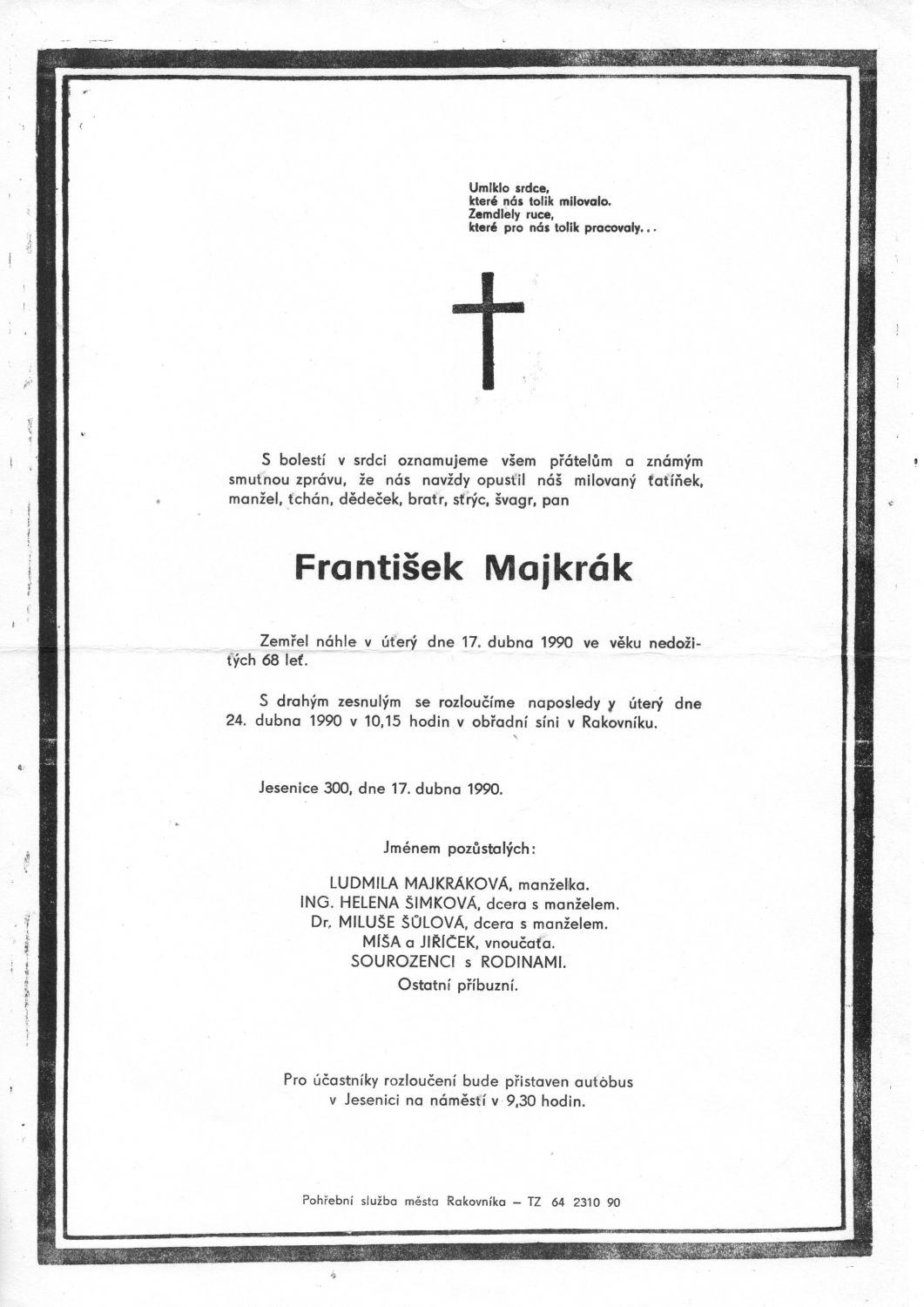 | Úmrtí | † 17. 4. 1990, Jesenice o. Rakovník |