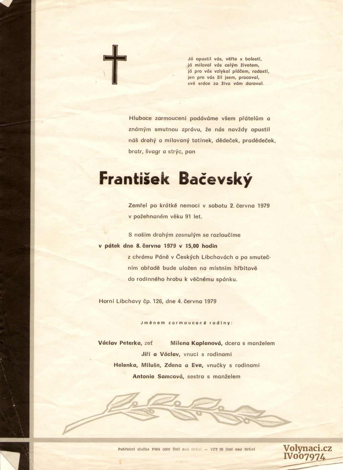 | Úmrtí | † 2. 6. 1979, Ústí nad Orlicí, hřbitov České Libchavy |