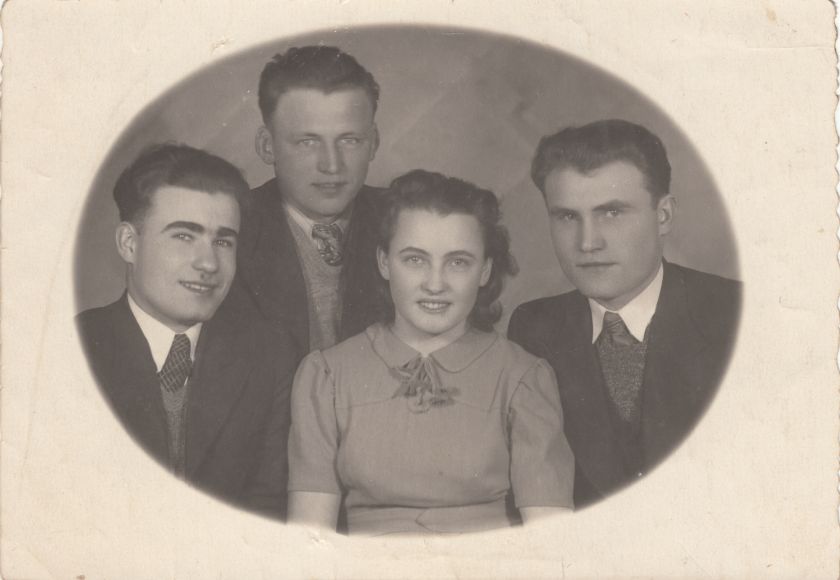 Josef, Anna a Láďa Schovánkovi a manžel Anny Koniak. (foceno v Lucku dne 10.02.1942)