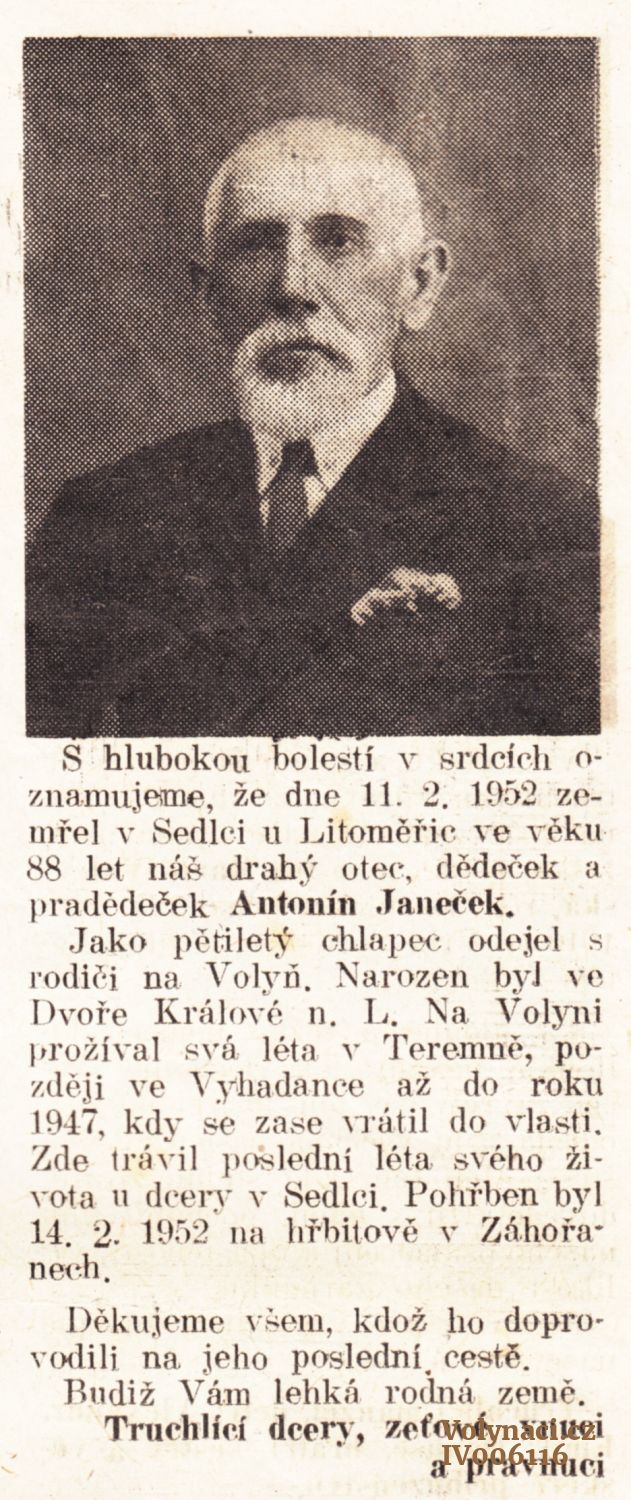nekrolog Antonína Janečka.