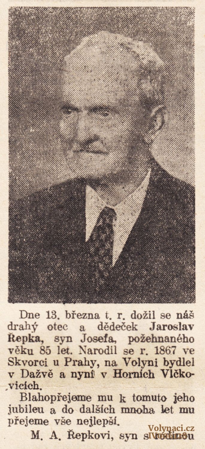Na Volyni bydlel v Dažvě a po reemigraci v Horních Vlčkovicích (poblíž Dvora Králové n./L.)
