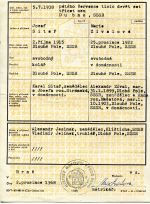 Propouštěcí list z armády z roku 1947 Josef Sitař