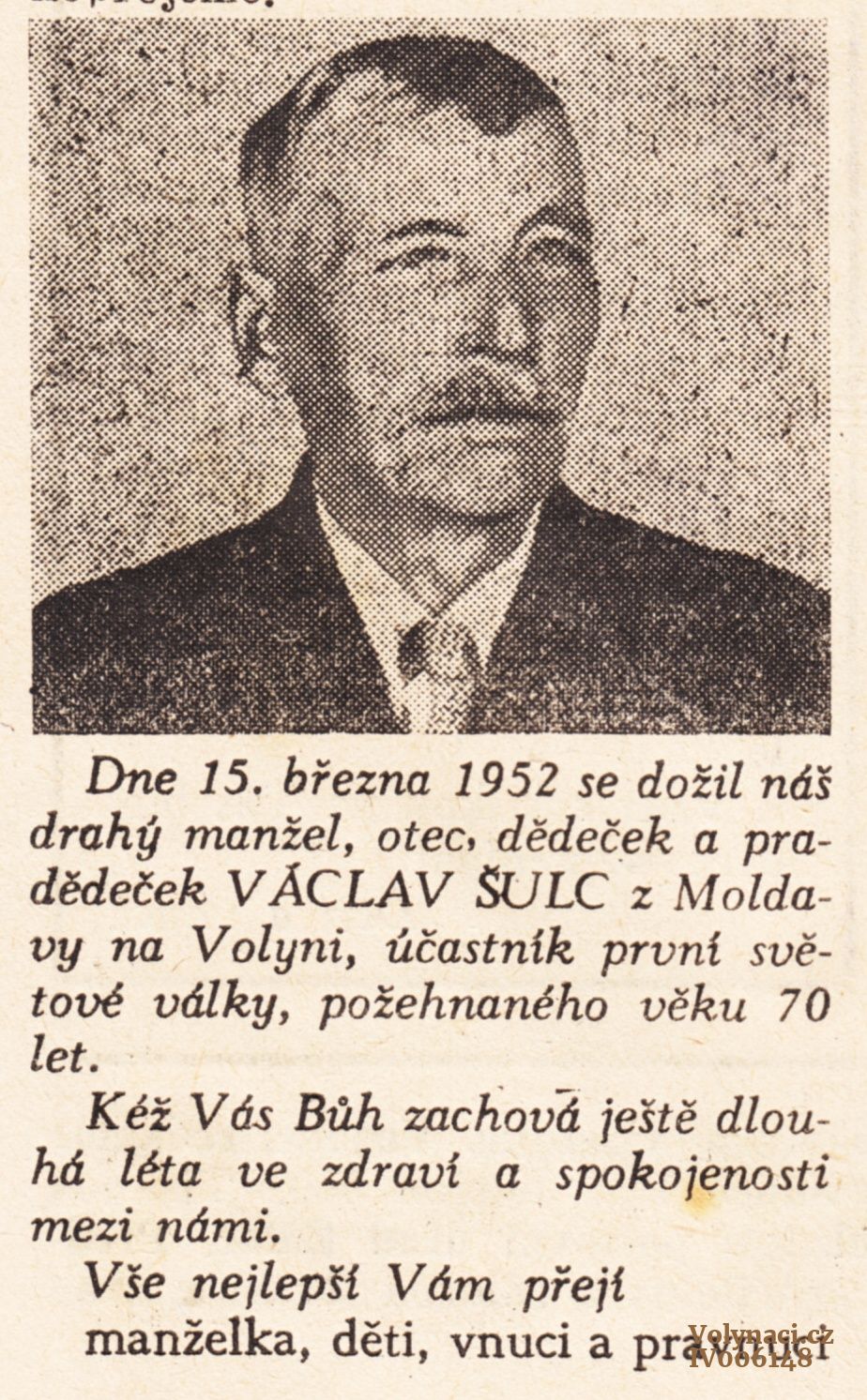 Blahopřání Václavu Šulcovi z Moldavy 70.narozeninám.