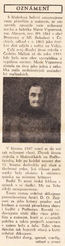 Nekrolog Marie Vignerové.