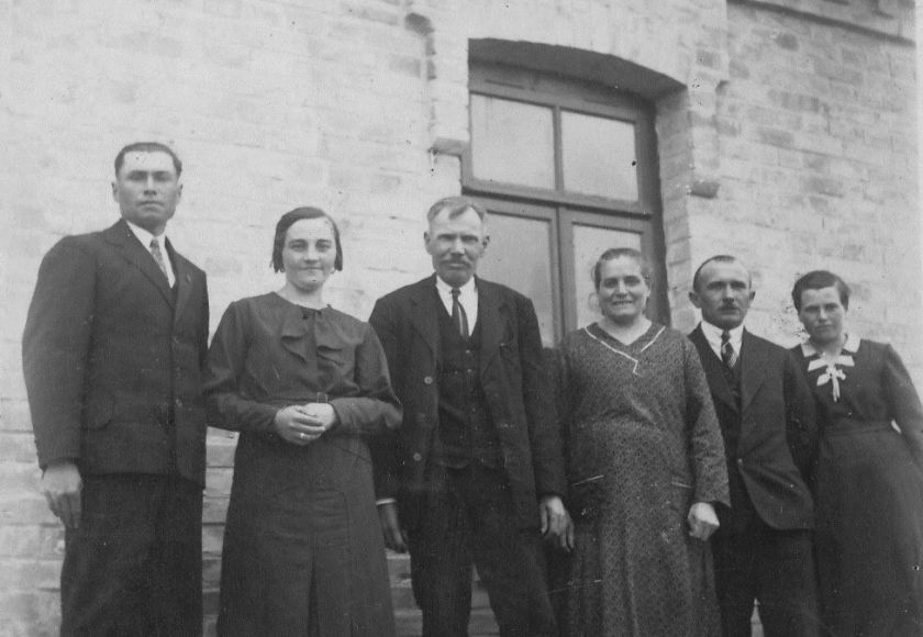 Sourozenci Štěpánkovi-všichni narozeni v Teremně. Uprostřed Karel, vlevo Slávek, vpravo Lojzík - bratři, sedící Slavěna, vdaná Krupková - její manžel padl na Dukle.