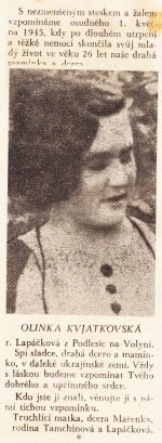 Nekrolog Olgy Kvjatkovské roz.Lapáčkové
