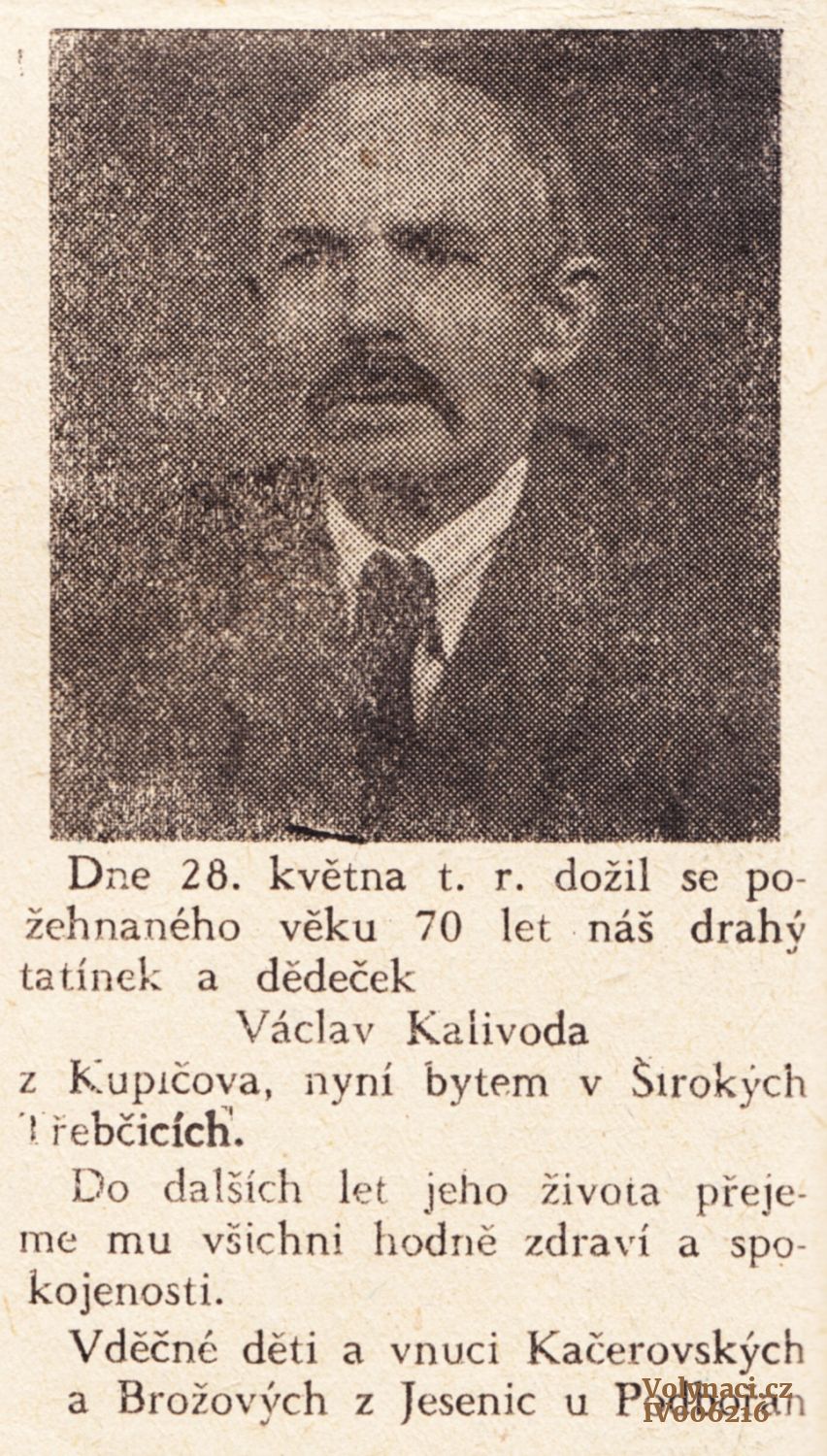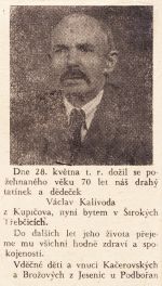 Václav Kalivoda se v r.1952 dožíval 70 let.
