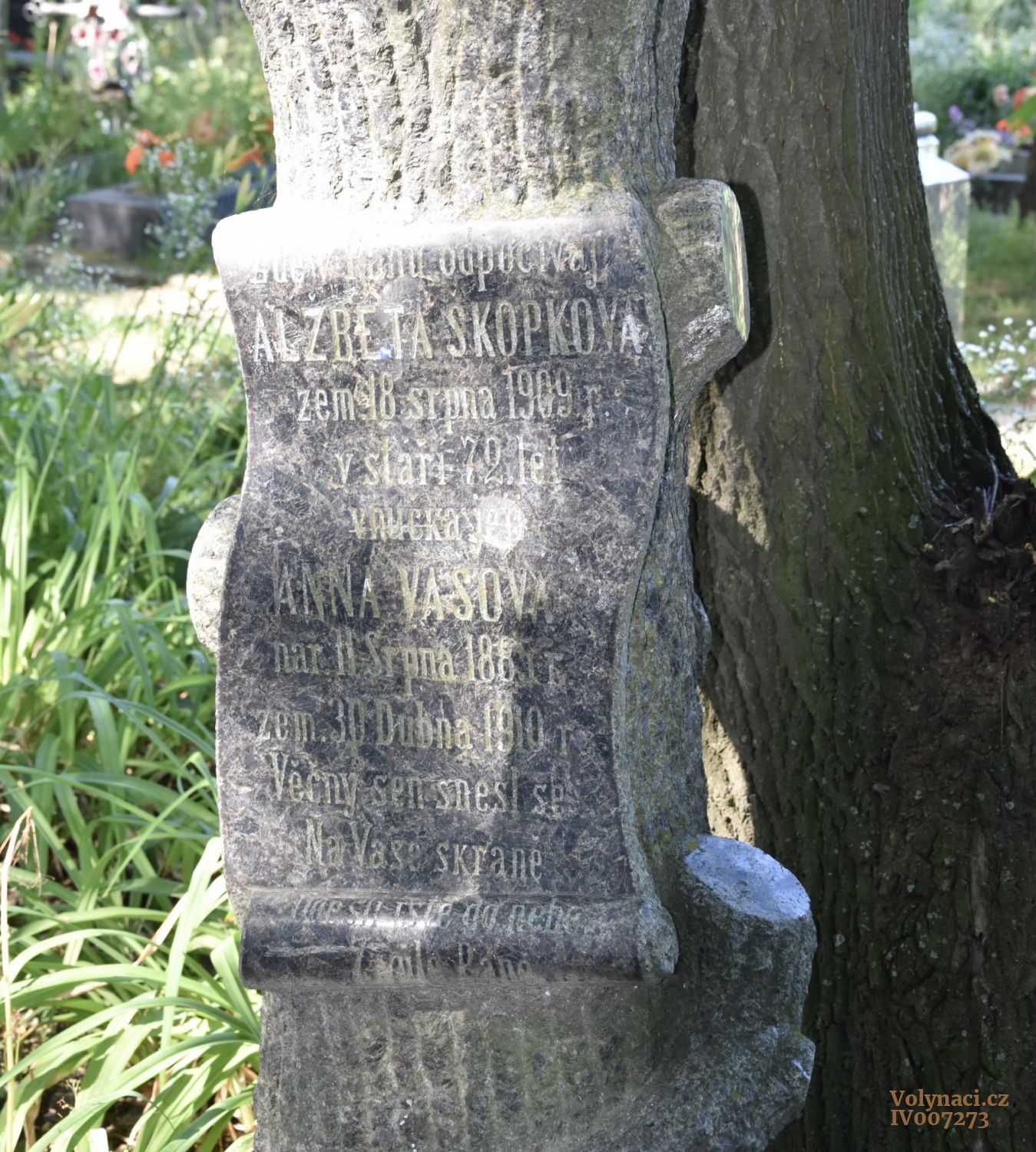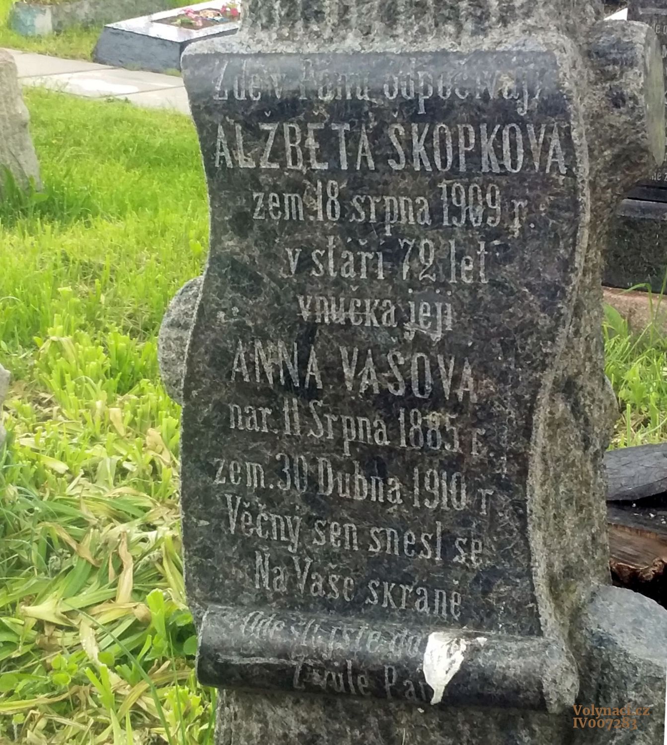 Náhrobek A. Škopkové a A. Vášové na českém hřbitově v Žitomiru. Český hřbitov v Žitomiru v minulosti patřil k obci Krošna.