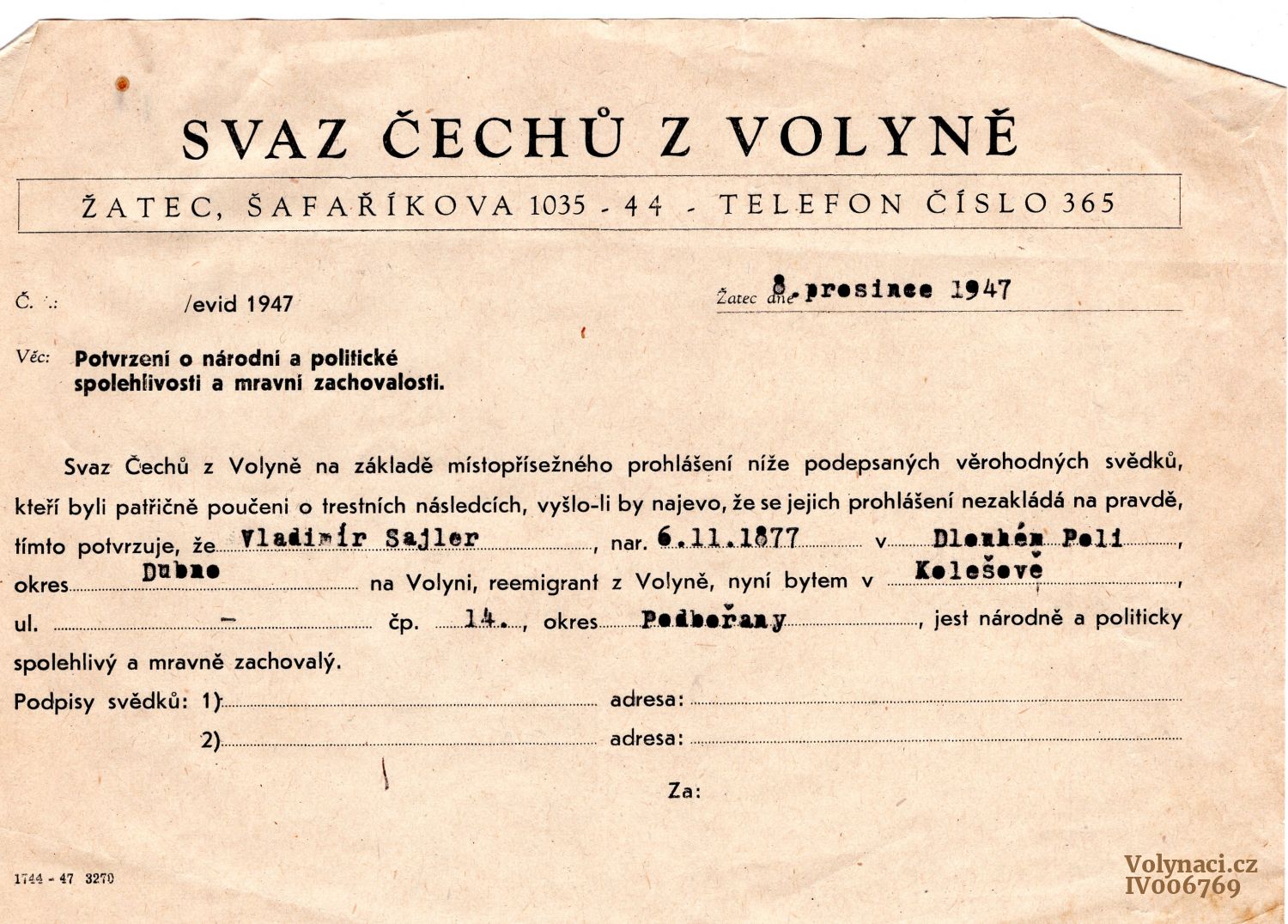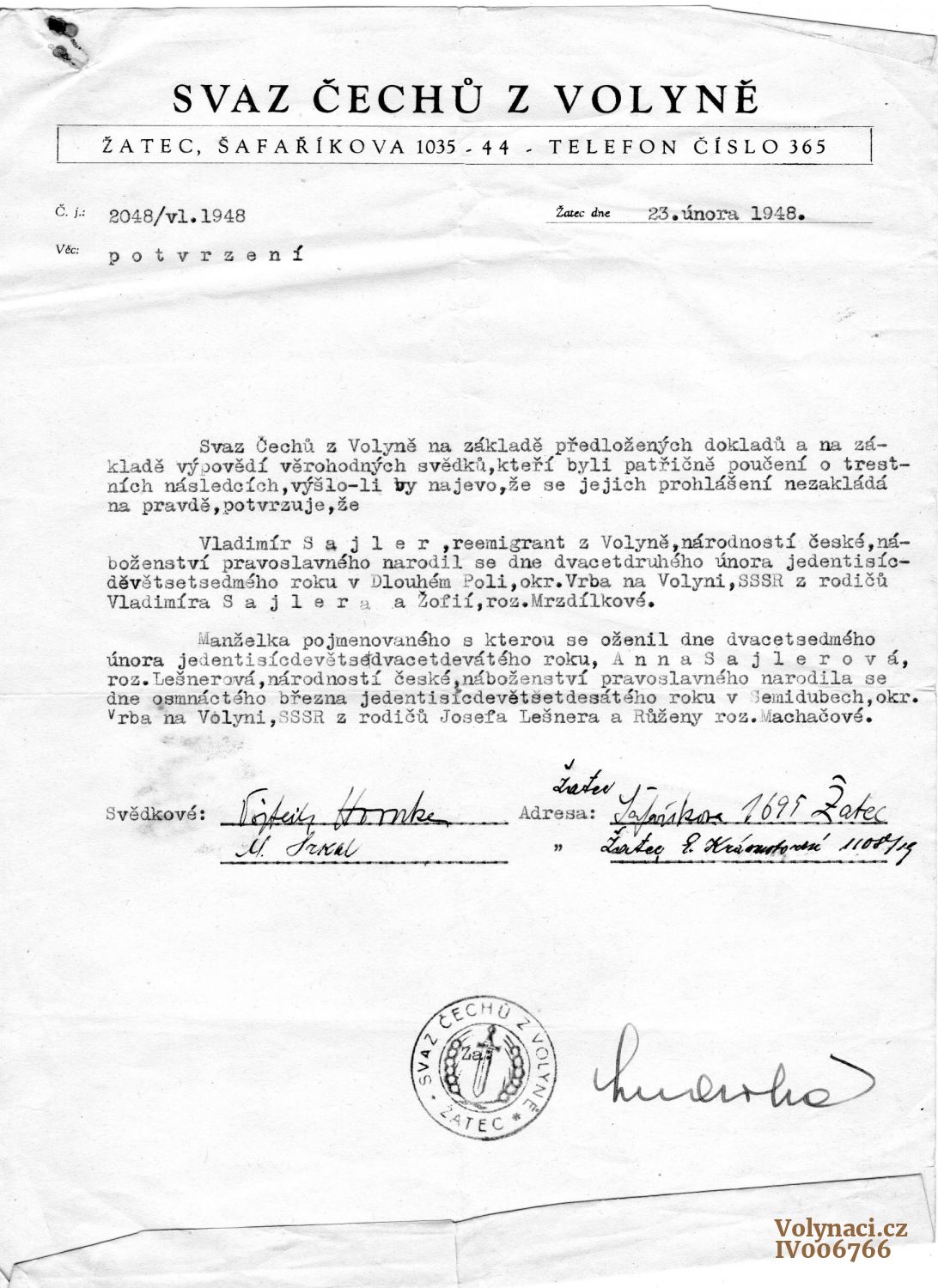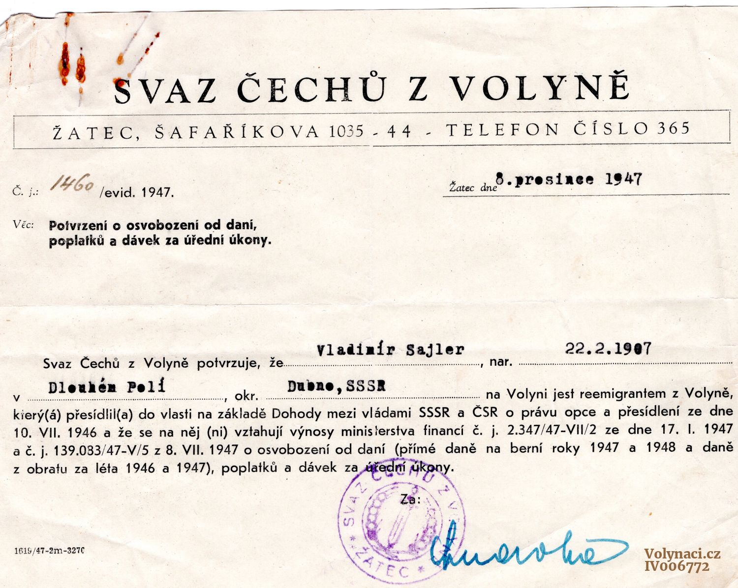 Sajler Alexandr; asi hned po reemigraci do Čech