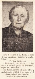 Pavlina Košátková oslavila v r.1952 jubileum 66 let.