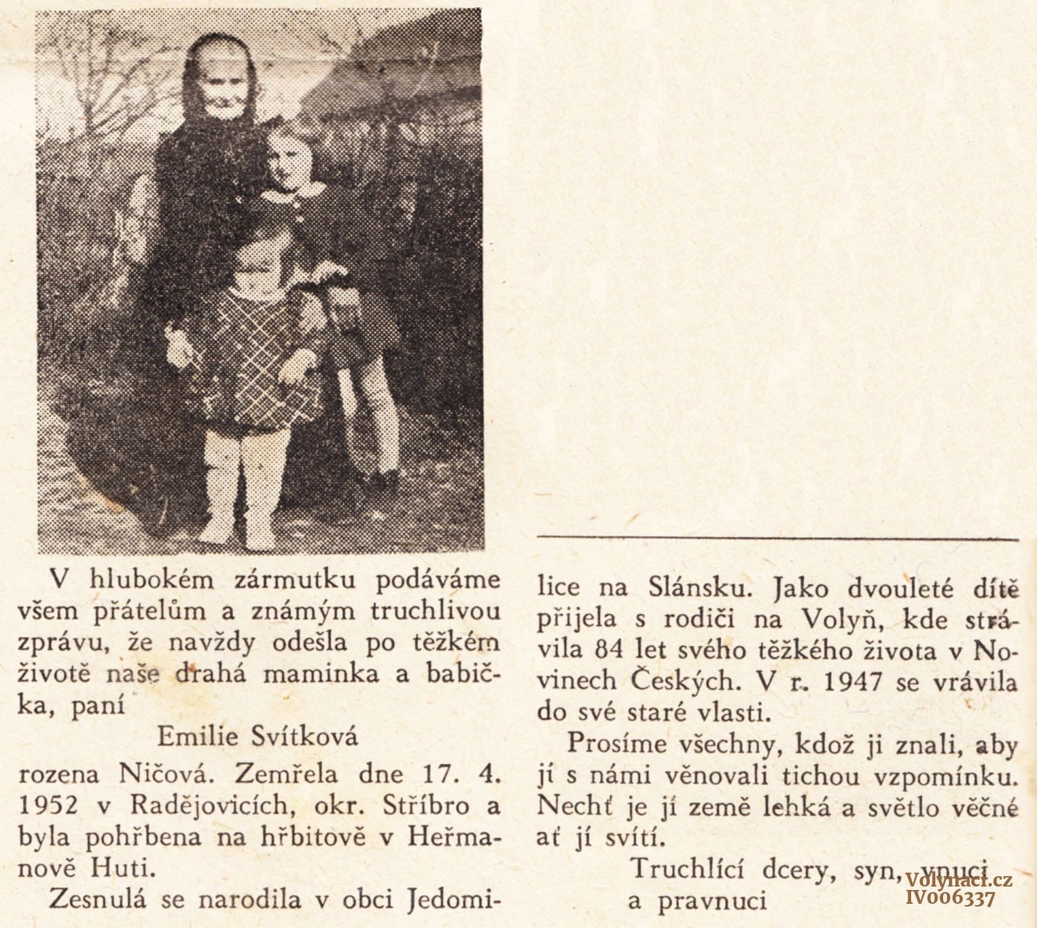 | Úmrtí | † 17. 4. 1952, Radějovice, hřbitov Heřmanova Huť |