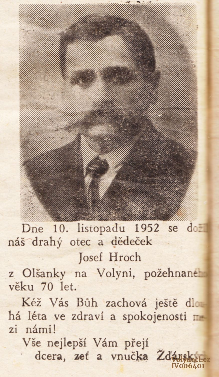 Josef Hroch oslavil v roce 1952 výročí 70 let