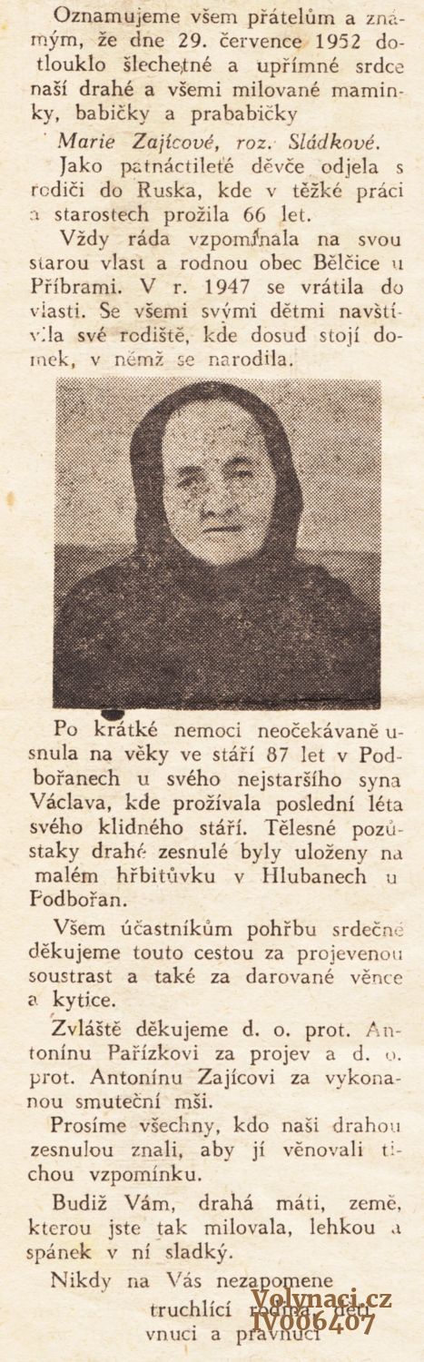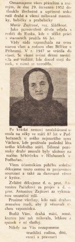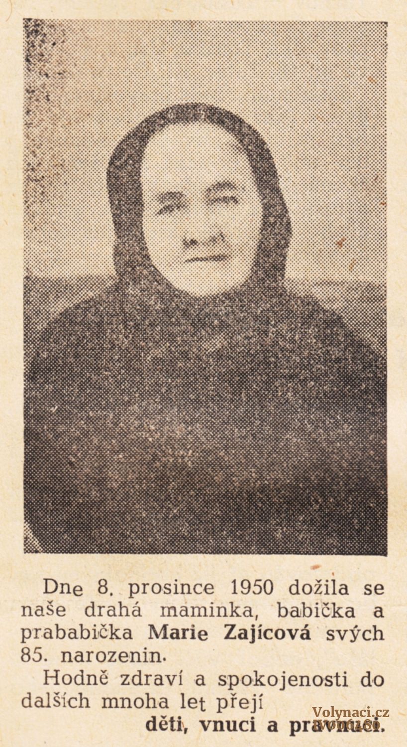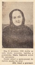 8.12.1950 se dožila paní Marie Zajícová 85. narozenin