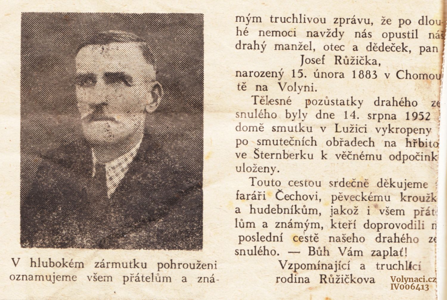 Nekrolog Josefa Růžičky