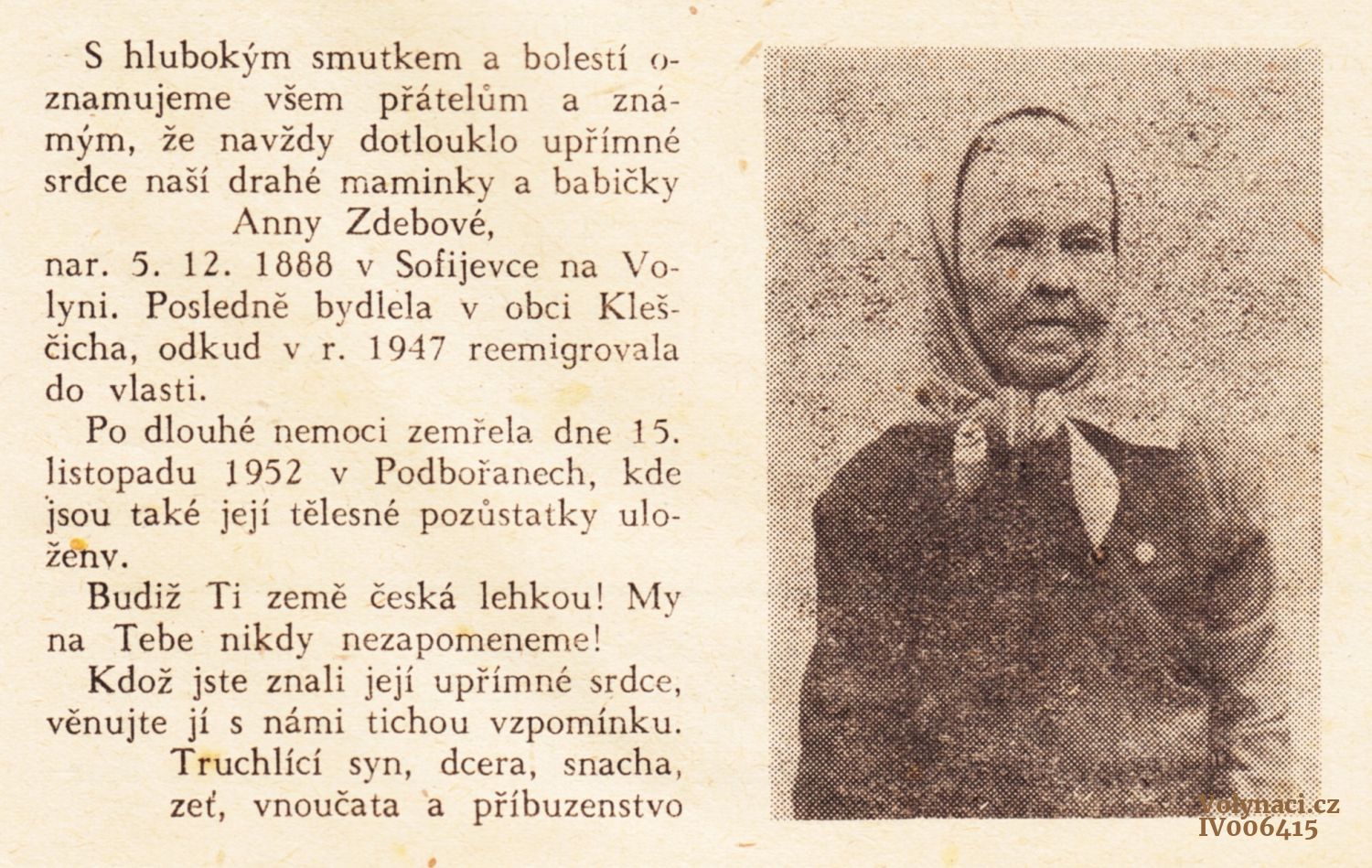 Nekrolog Anny Zdebové