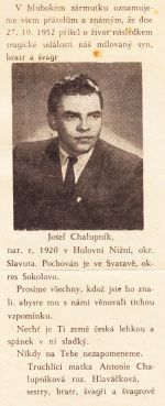 Rodiče: Hlaváčková Antonie, Chalupníková
